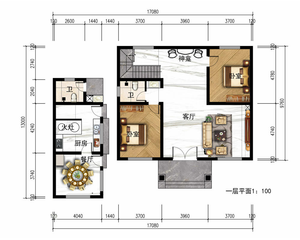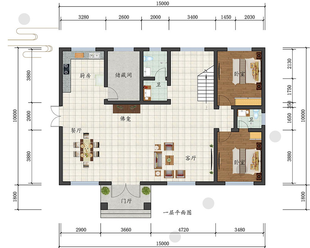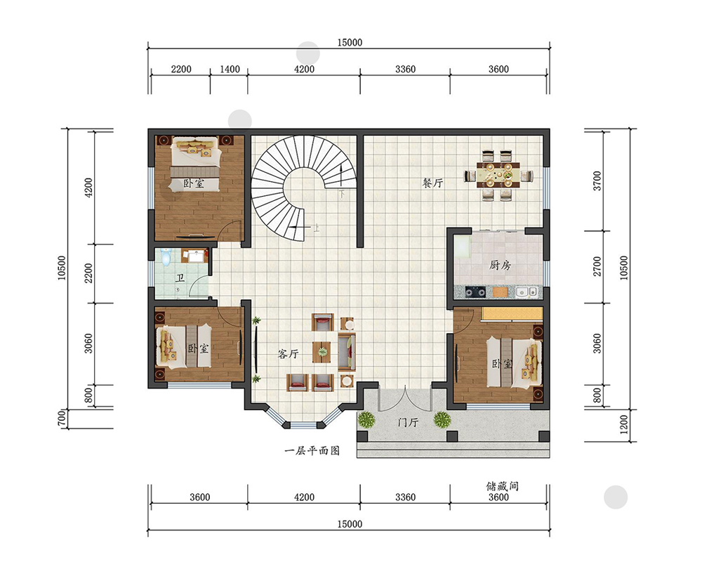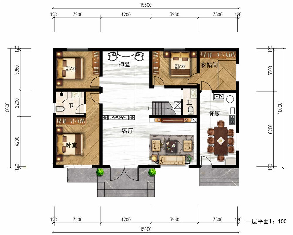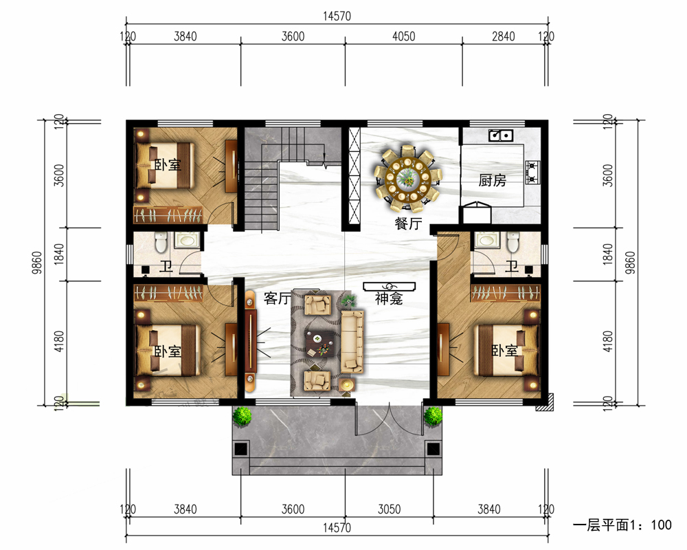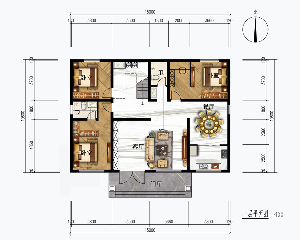 占地面积150-200平方4开间
