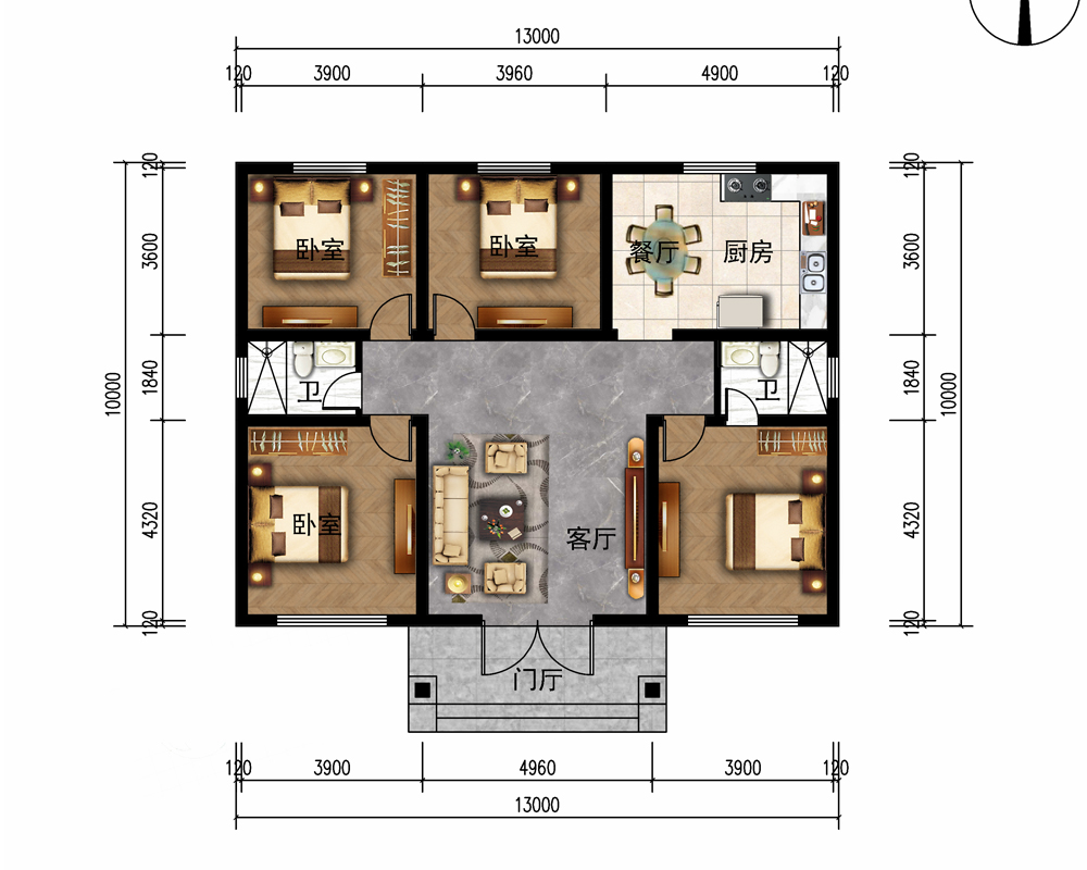 占地面积150-200平方3开间