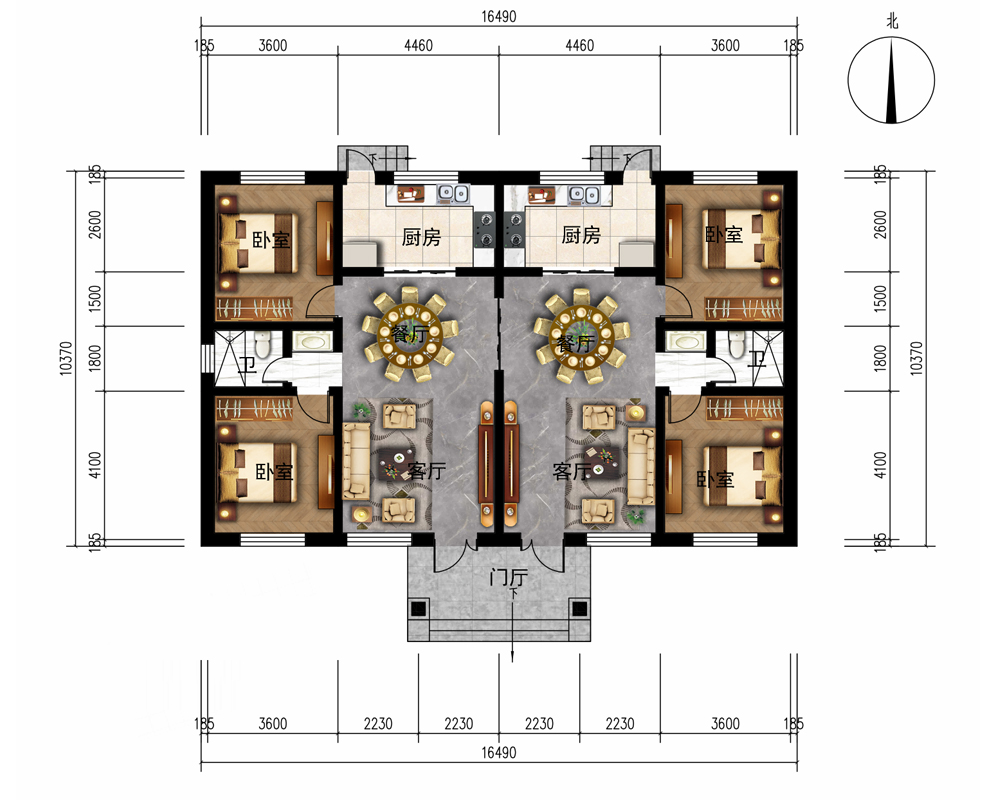 占地面积150-200平方4开间