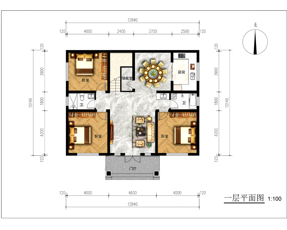 占地面积120-149平方3开间